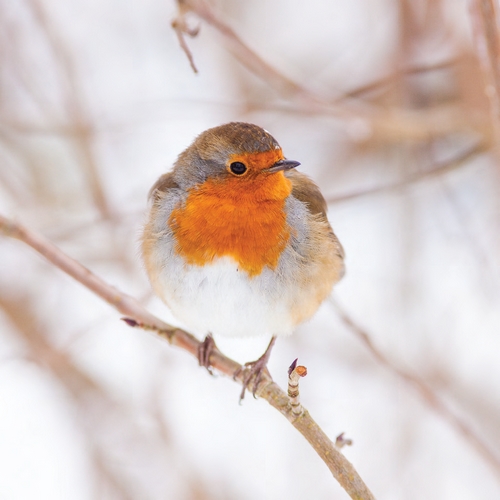 Robin on snowy twig